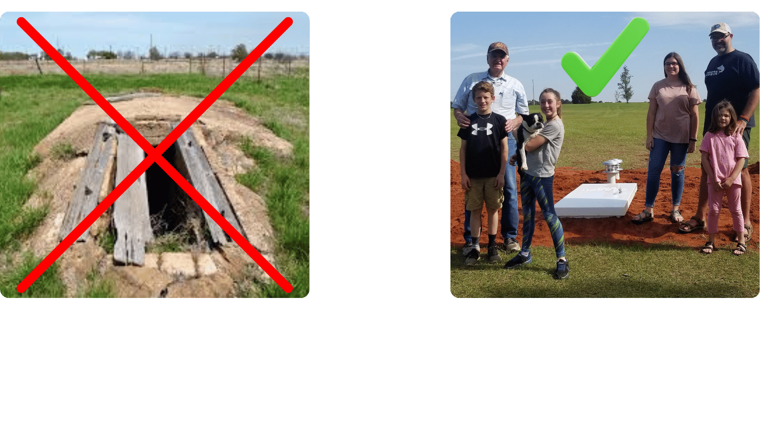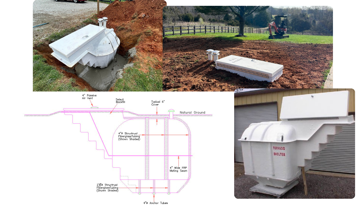 Our shelters and installation methods follow FEMA and ICC standards and have passed third party testing ensuring they can endure up to EF5 storms.